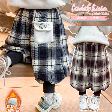 小妖乖&小熊口袋格子加绒款